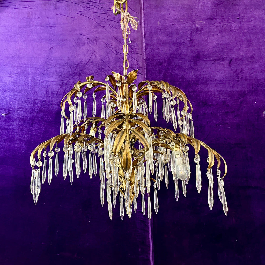 Antique Gilt Metal & Crystal Chandelier, c.1900