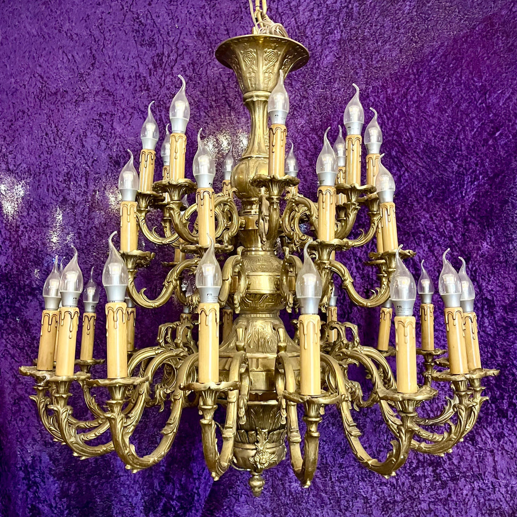 Large French Rococo Revival Chandelier in Gilded Brass, c.1900