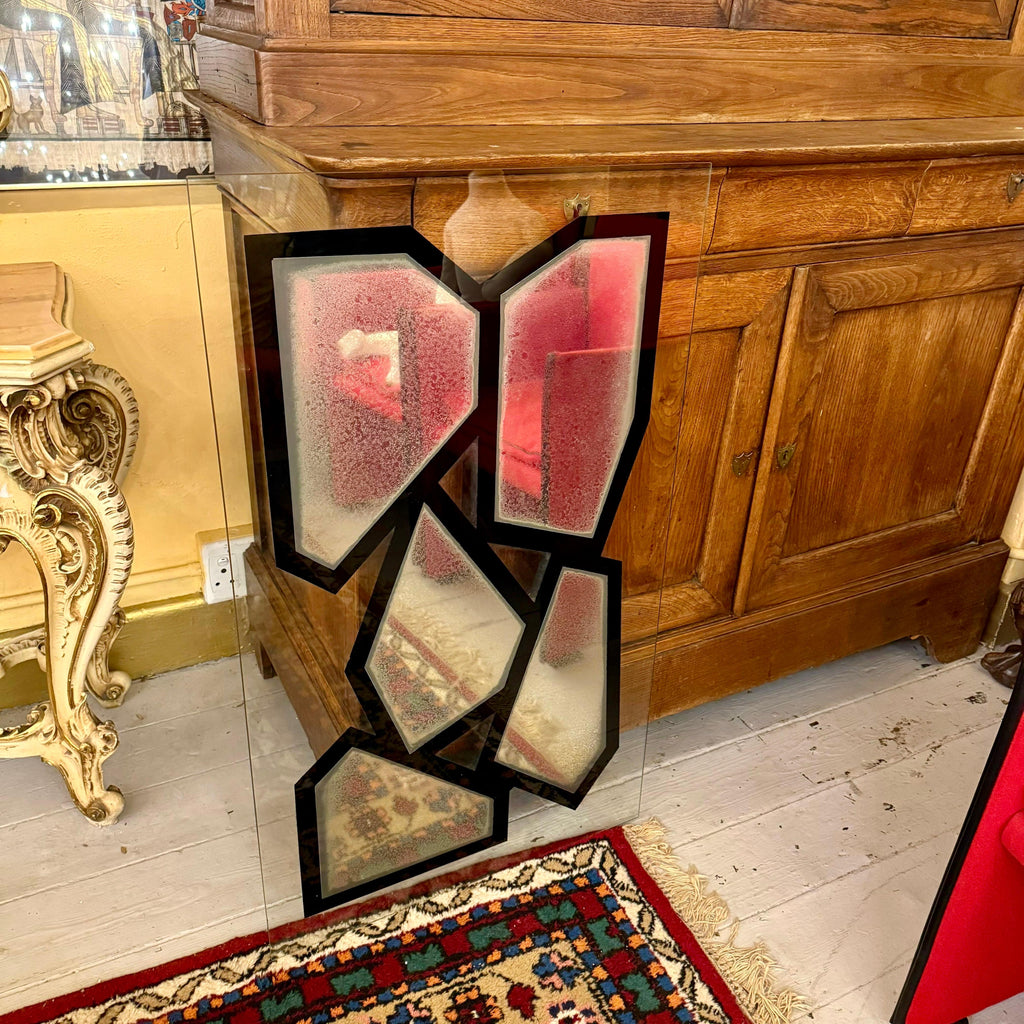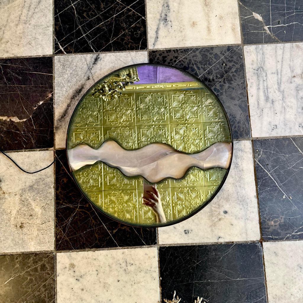Aged Venetian Scalloped Edge Mirror with Floral Etching