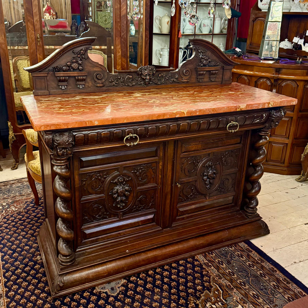 Large Walnut and Marble-Top Buffet with Carved Detail, c. Late 19th Century