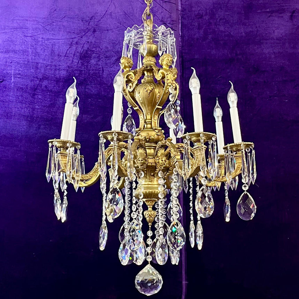 Gilt Brass & Antique French Crystal Chandelier - SOLD