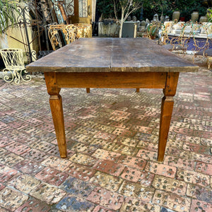 A beautiful example of French provincial furniture, this solid oak dining table dates to the late 1800s and has all the charm you'd expect from a piece that’s been lived with and loved for generations.