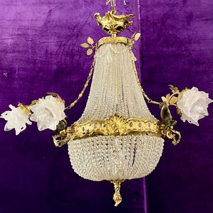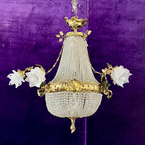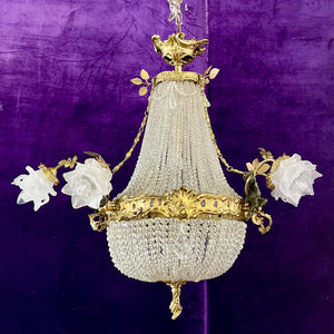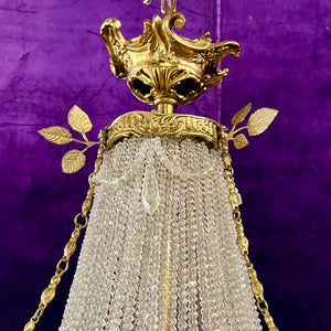 A beautifully detailed French chandelier in the neoclassical style, dating to the early 20th century.